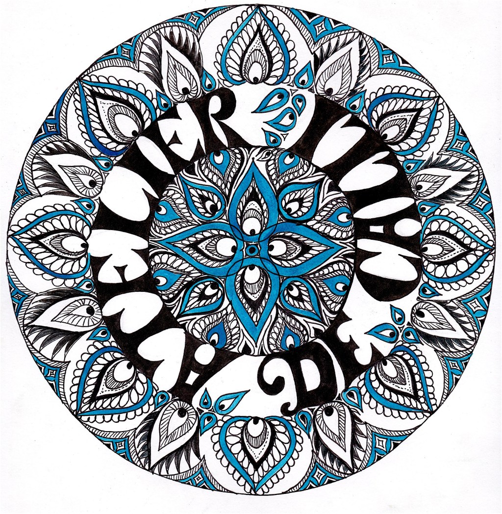 Pour un projet à la MDS de Mâcon, dans lequel un groupe de femmes va travailler sur le titre de leur groupe, j’ai imaginé un attrape rêves façon mandala. Mon idée était que ce groupe leur apporte soutien, projets, amitiés, donc un peu de rêves pour l’avenir. D’où l’envie d’illustrer le nom dans un attrape rêves, au lieu d’une affiche classique. Chacune créera son objet, et insérera ensuite des plumes en papier sur lesquelles seront inscrits des mots en rapport avec le groupe. Comme des promesses.