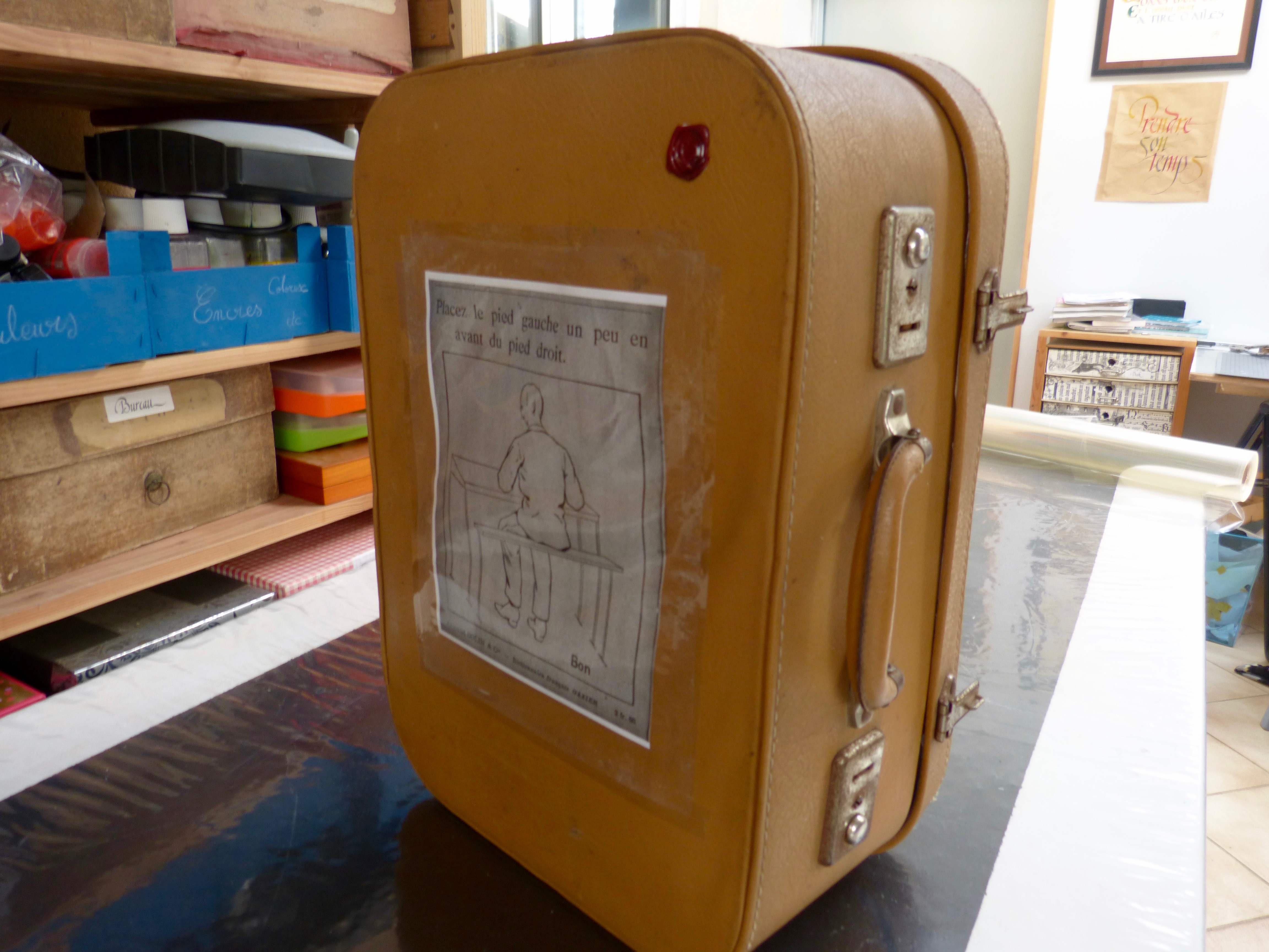 Cette mallette m’accompagne lors des interventions en milieu scolaire ou associatif, pour des projets pédagogiques et animations de calligraphie