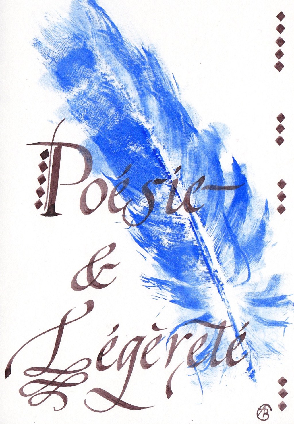 Création de cartes toutes très différentes à l’atelier. J’ai mêlé la calligraphie à la gravure et à l’estampage pour donner plus de dynamisme, et aussi j’avoue pour m’amuser …