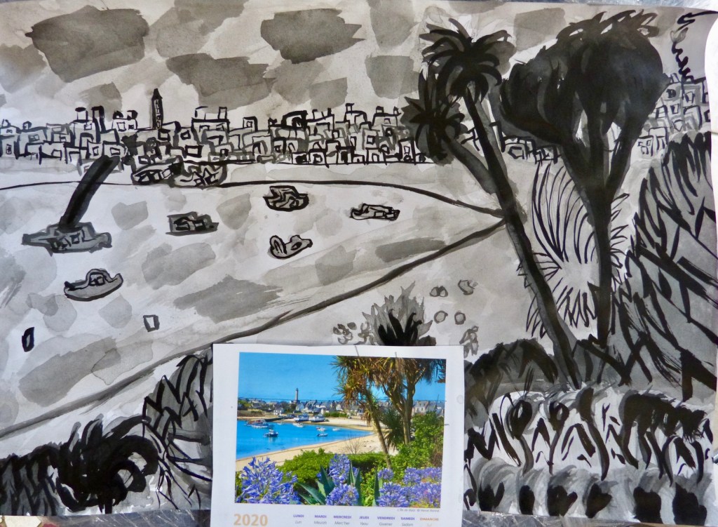 Paysage refait à l’encre de chine, travail des gris