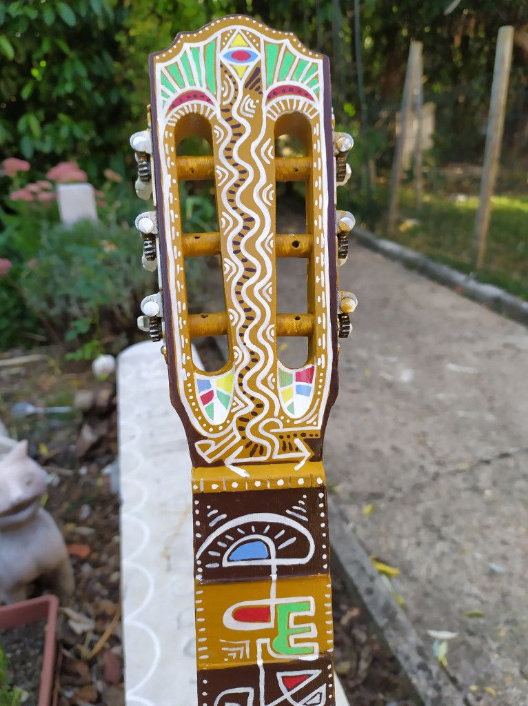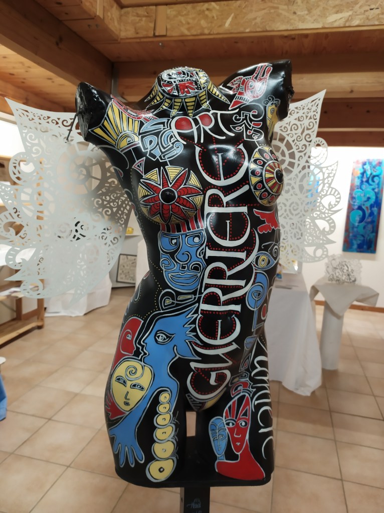 Je suis bien confuse en regardant mon site ce matin, je me rends compte que je l’avais presqu’oublié… Pourtant j’en ai du matériel à montrer, et des amusements finis.. Fan des bustes plastique, j’ai poursuivi cette quête de transformation, découvrant sur ma dernière, la Femme Lune, la joie de la travailler aux pigments. Ma petite guitare aussi y est passé.. Si on ne m’arrêtait pas je pense que les chaises et les murs de la maison seraient recouverts, les meubles sont déjà faits..alors j’essaie de me canaliser, il me reste encore un buste vide, ensuite j’irai à la pêche aux supports!!!