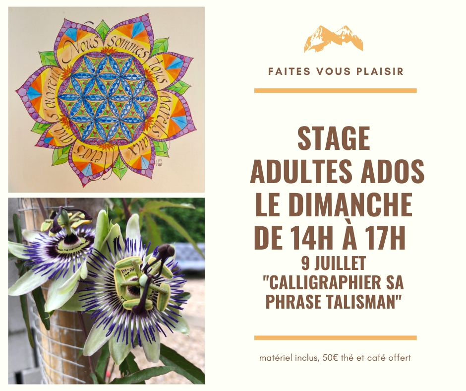 après une période de latence, je mets en place un stage adultes et un après-midi pour enfants début juillet, histoire de se retrouver avant le grand été…