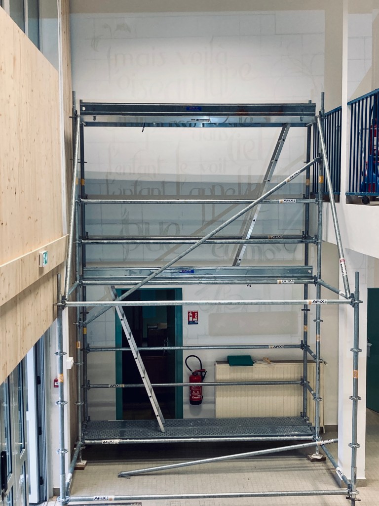 L’association et la mairie de Cluny ont été un grand soutien, j’ai disposé d’un échafaudage bien sécurisé, de vidéo projecteur, de la possibilité de venir en été dans l’école aux heures que je choisis… Je viens de commencer, cette fin juillet, le 28… il était important que je travaille en été, pour que les enfants, et les enseignants, découvrent leurs murs ornés à la rentrée. Je dois donc finir avant fin août… Et je ne vous ai pas tout dit, je dois m’occuper d’un deuxième mur…. je vous expliquerai ça une autre fois…