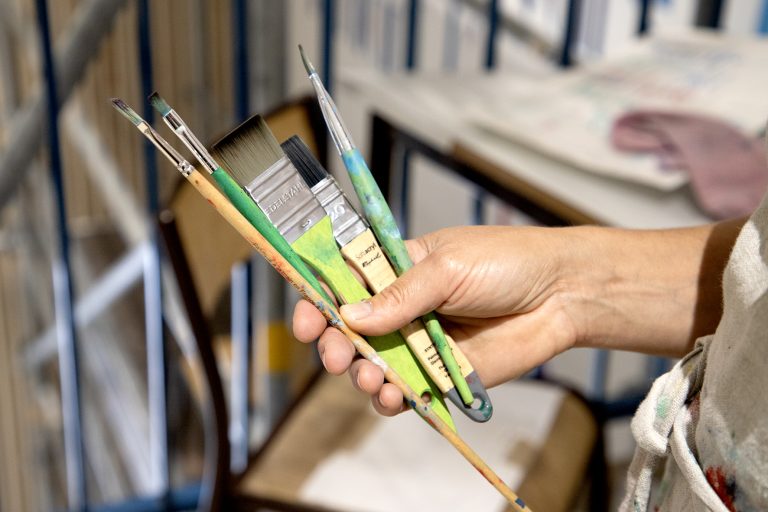 J’avais déjà réfléchi aux couleurs en travaillant la maquette, mais il est vrai qu’en travaillant en aussi grand le résultat est un peu différent, cela change aussi avec la lumière de la pièce. J’ai réalisé quelques ajustements pour obtenir des couleurs éclatantes et garder une lisibilité du texte.