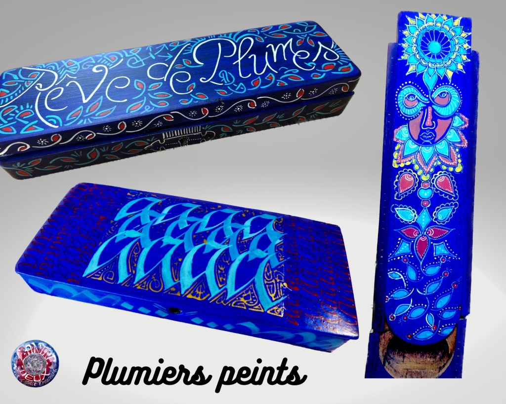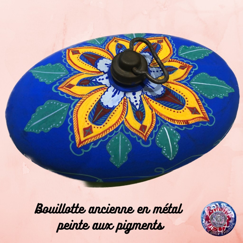 L’amour des anciens objets m’accompagne depuis déjà longtemps. J’aime à m’en entourer, je les réutilise au maximum, j’apprécie de pouvoir leur donner une deuxième chance. Alors, tout naturellement, je me suis mise à les peindre, à m’en servir comme d’une toile, pour les transformer en oeuvre d’art.. ainsi le faisaient les anciens dans diverses coutumes. Orner les objets leur donne un caractère, et les sacralise, peut-être même cela leur procure t’il un peu de magie??